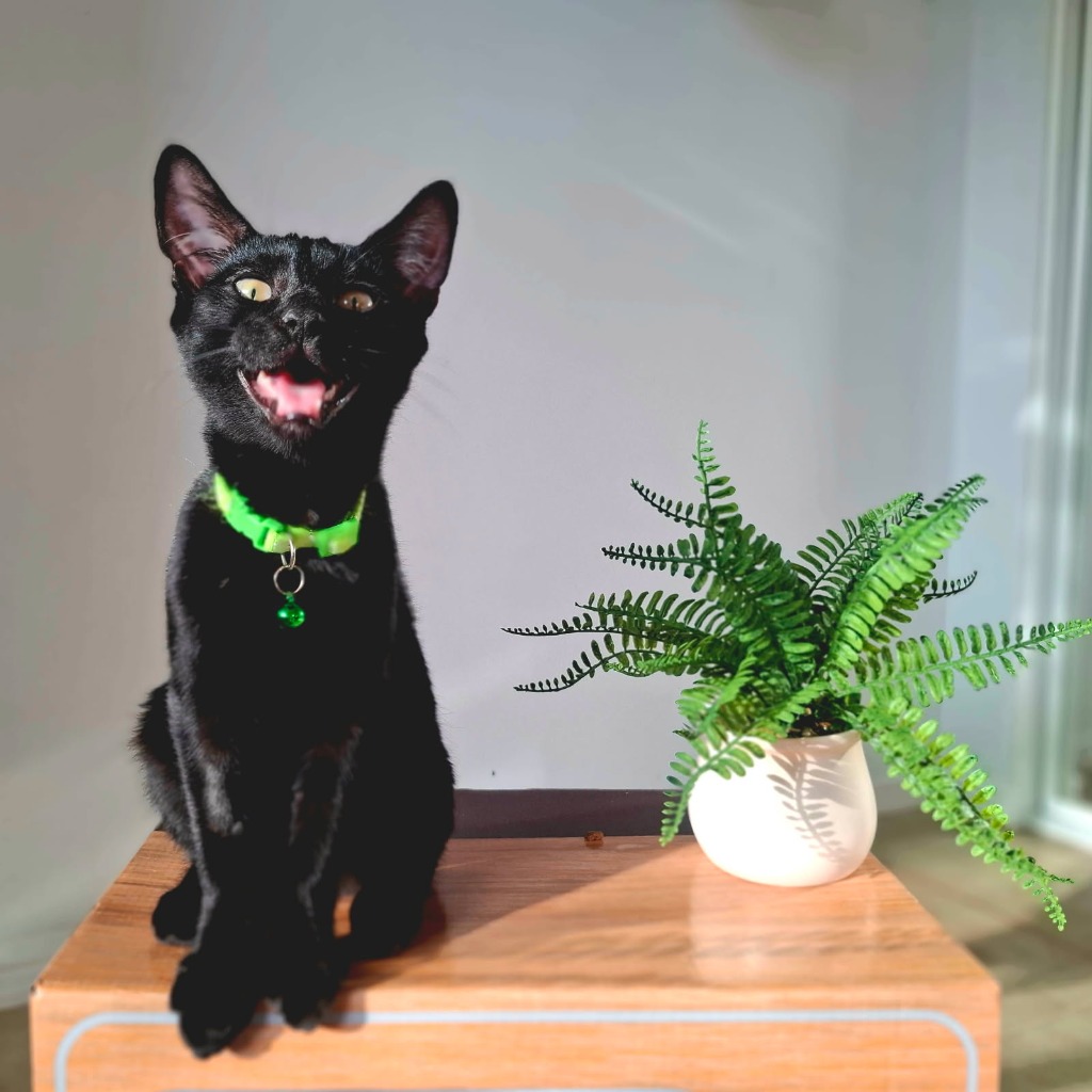 Outgoing Hercules is more than just his good looks with his sleek, silky, soft black fur and shining, green eyes.