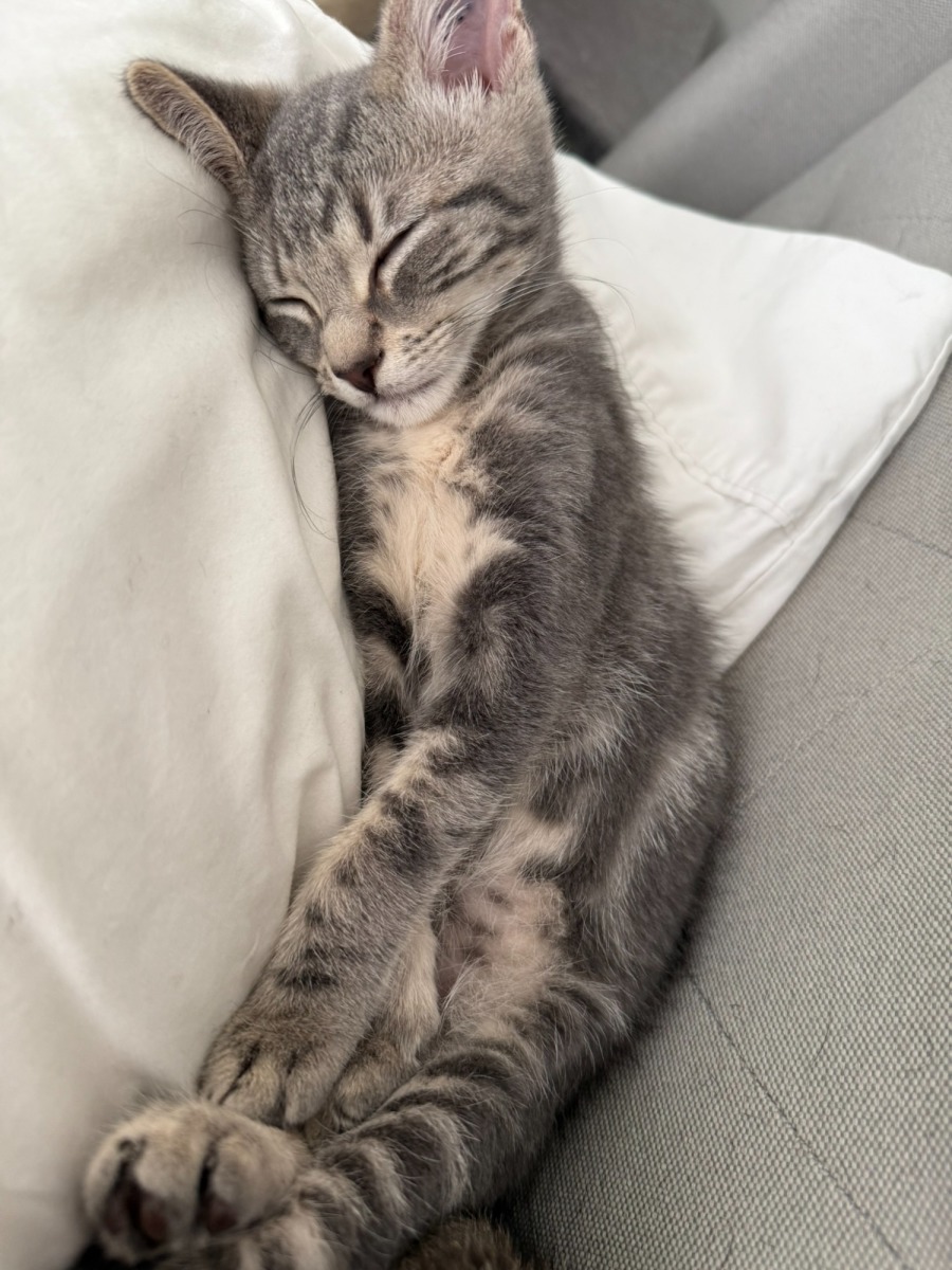 Meet Wallace, the effortlessly charming grey tabby whose personality is as striking as his looks. He has a delightful blend of playfulness and affection that makes him stand out in any crowd. Whether he's frolicking with his kitty siblings or snuggling up with his foster carers, Wallace knows how to capture hearts with effortless grace.