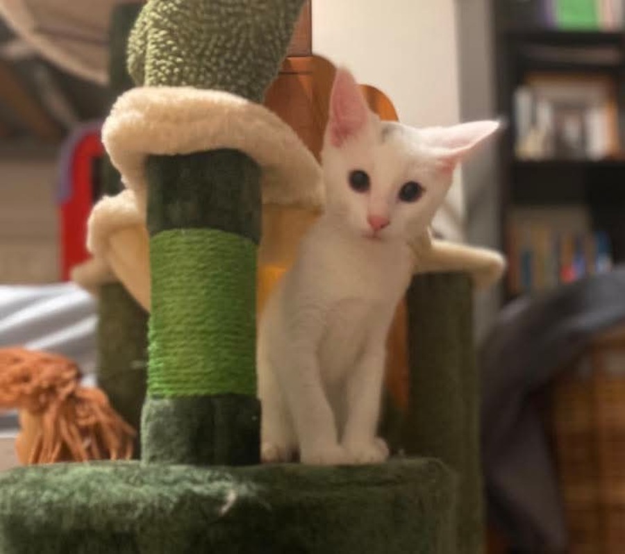 Meet Morticia, an extraordinary feline who embodies elegance and vitality. With a striking appearance reminiscent of a white panther or mythical white lion, Morticia captivates with her graceful energy.
