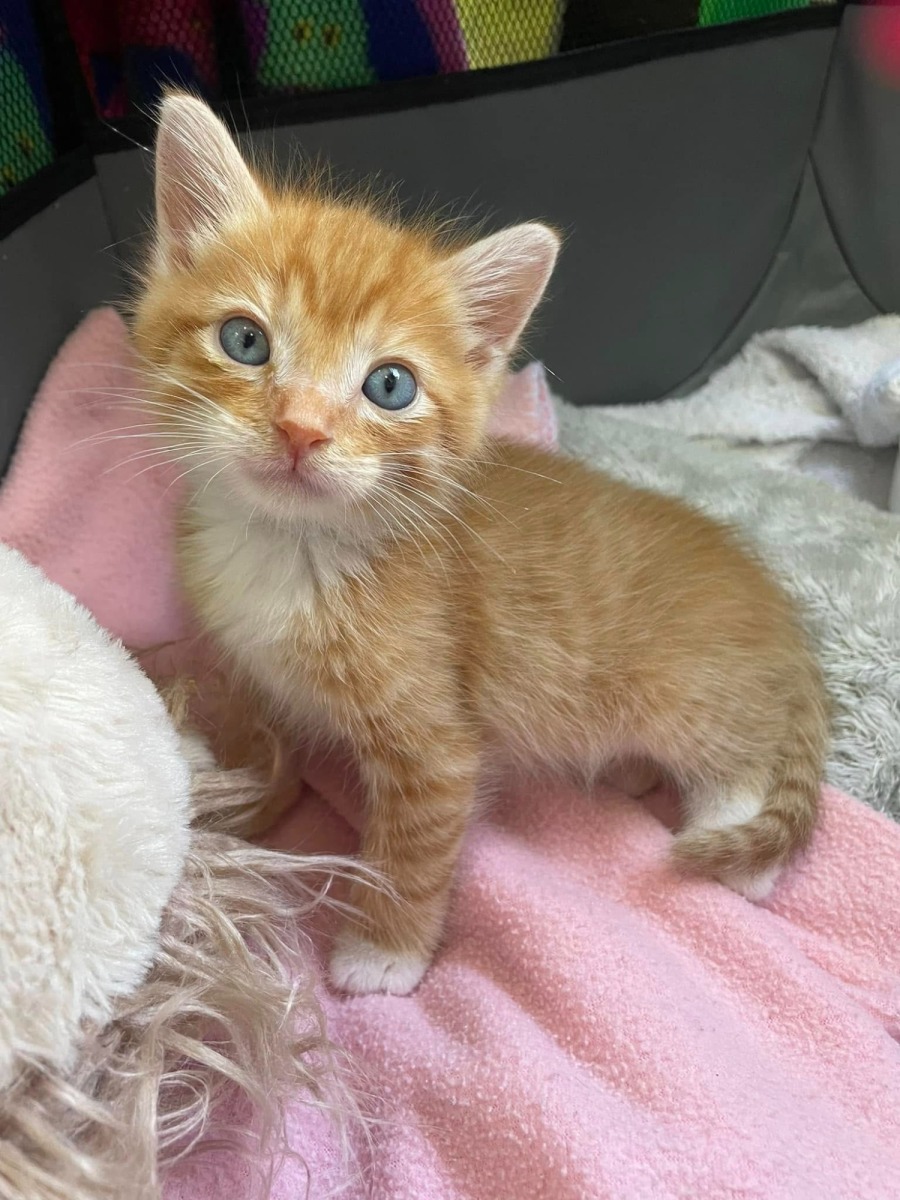 Buzz was found with another kitten by a kind lady who delivered him to us. A tiny neonate at the time, he’s now 6 weeks old and growing into the most loving boy.