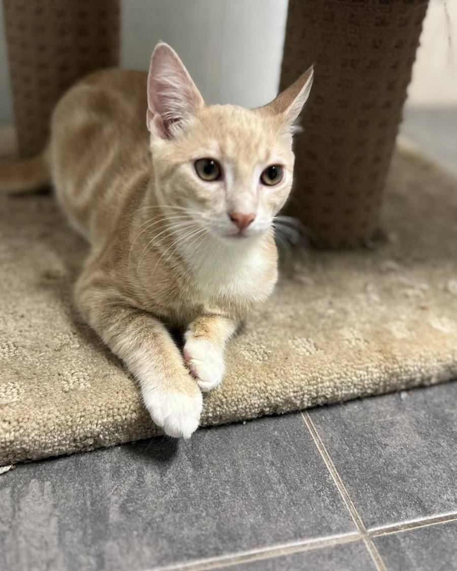 Caramel came to us with his siblings just before Xmas covered in ringworm. They have been treated and are now ringworm free YAY!!! Caramel loves cuddles, pats and scratches. He’s a bit shy to start with but I’m guessing that’s because he has been isolated while being treated. He’s playful, handsome and would make a great addition to your family.