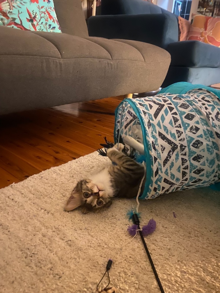 Although he is still a little nervous around people and may take some time to settle in, he loves hanging with his foster siblings and becomes more confident around them. He is super energetic, playful and is very curious – his zoomies are always entertaining! Gravy is a very affectionate boy and immediately starts purring when you cuddle him after playtime.