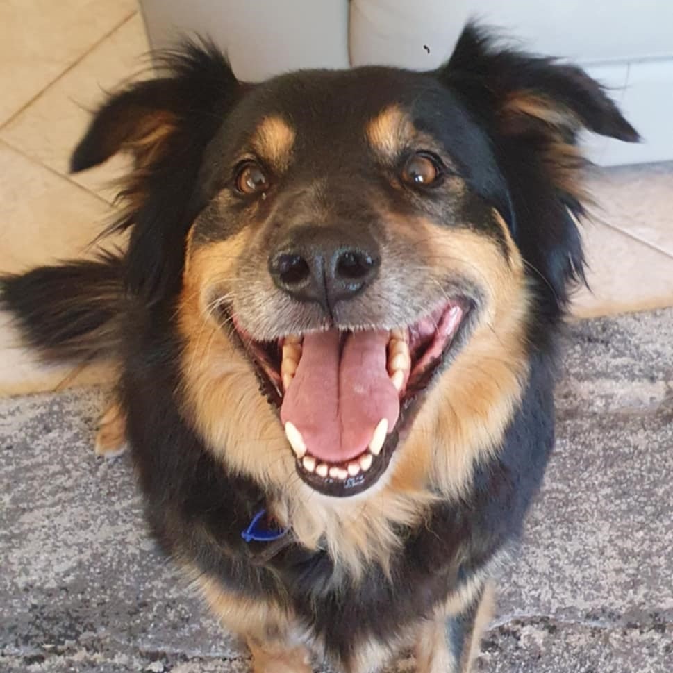 Squire is sweet, friendly and eager to please. He sits on demand and is quickly learning to 'wait' for an invite to come inside. He is friendly with big and small dogs and was reported by his previous owner to be neutral to cats, horses and sheep, although we are unable to confirm this. Although a Kelpie, Squire hasn't been a working dog and thrives in a loving family environment as your best buddy. This sweet boy is a total smooch who loves attention and cuddles in every form and from anyone.