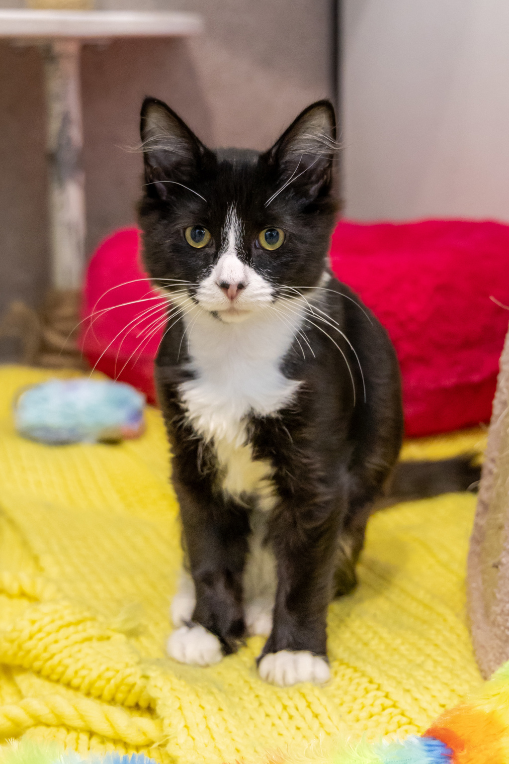 Patch adores snuggling up with his feline siblings, often curling into a pile of fluff for the best naps. This gentle boy loves cheek rubs and will lean into your hand, soaking up all the love you can give. His purrs will let you know just how much he enjoys the attention. Snuggly beds, cozy hideouts, and warm laps are his favourite spots to relax. Patch is always looking for the perfect place to settle in for a snooze.