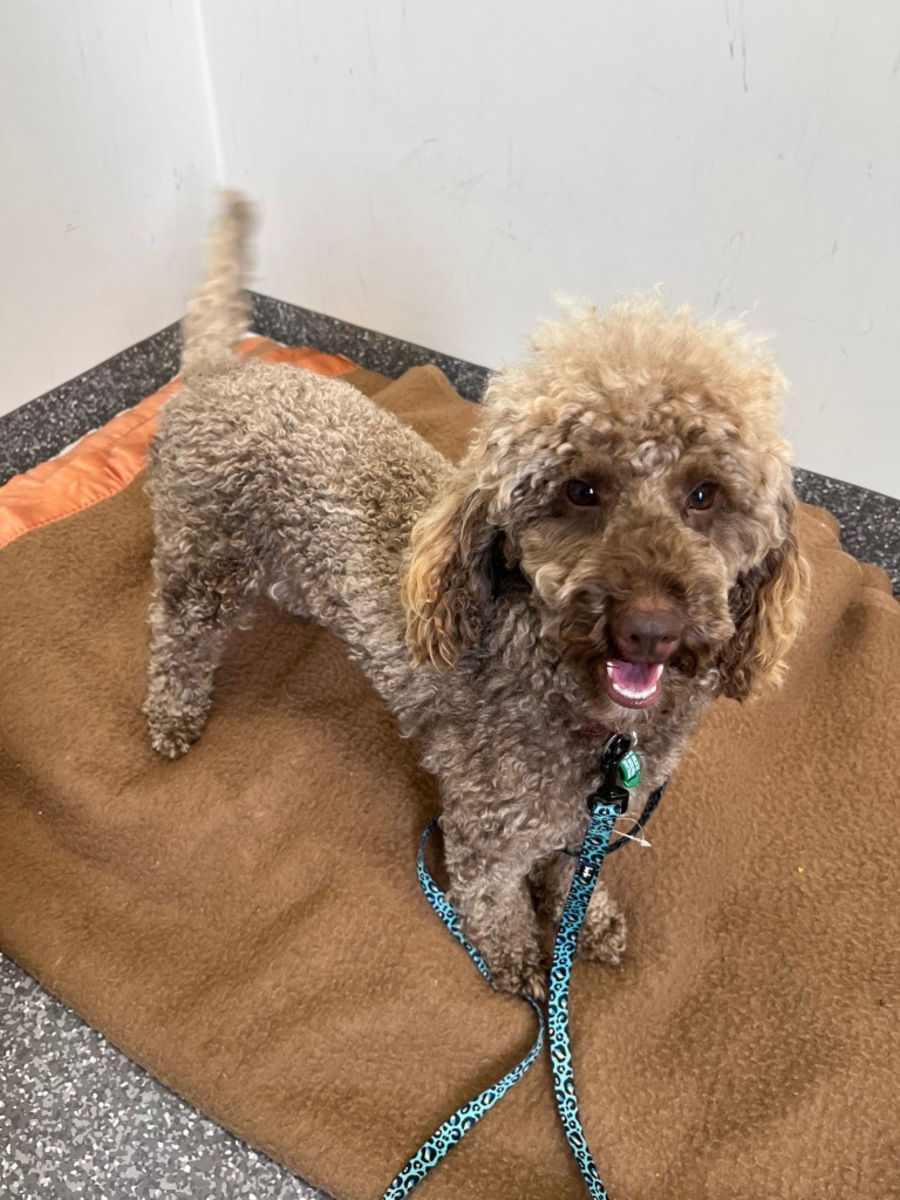Pepper is a loving, intelligent and loyal chocolate poodle searching for a forever home where she can enjoy a quite, comfortable life with plenty of love. She may be shy when you first meet her, but with kindness and gentle encouragement, she quickly blossoms into a cuddly, affectionate companion. There is still plenty of puppy fun in her and she enjoys a good play session.