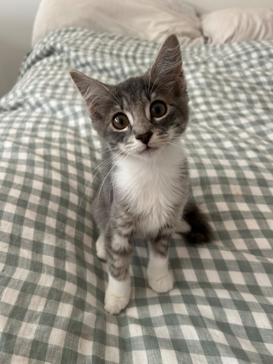 Oyster has the sweetest face, most adorable purr and loves to cuddle. She truly is the most lovely kitten who will warm your heart instantly! Oyster can be a little nervous to start off with but once she feels safe she will love you so much. She just needs a patient, kind and loving family to give her the chance he needs to come out of her shell.