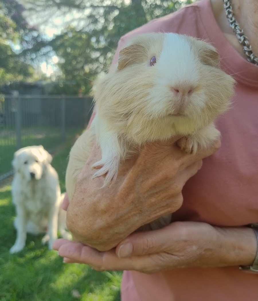 I have to admit, I'm in love with Ron's colouring. I'm not sure lilac dutch covers his special markings, and there is also a lot of yellow in his coat. In any case, he is very unusual! Only a young lad, Ron here gets along with all the other boys he's currently housed with. He has been desexed, so will be able to mingle with the lady guinea pigs from the 5th of March. Ron is still a little shy, but he's so sweet once you reassure him with a cuddle. I don't think it will take him long to gain confidence, he is just in need of a loving home, and some one on one attention.
