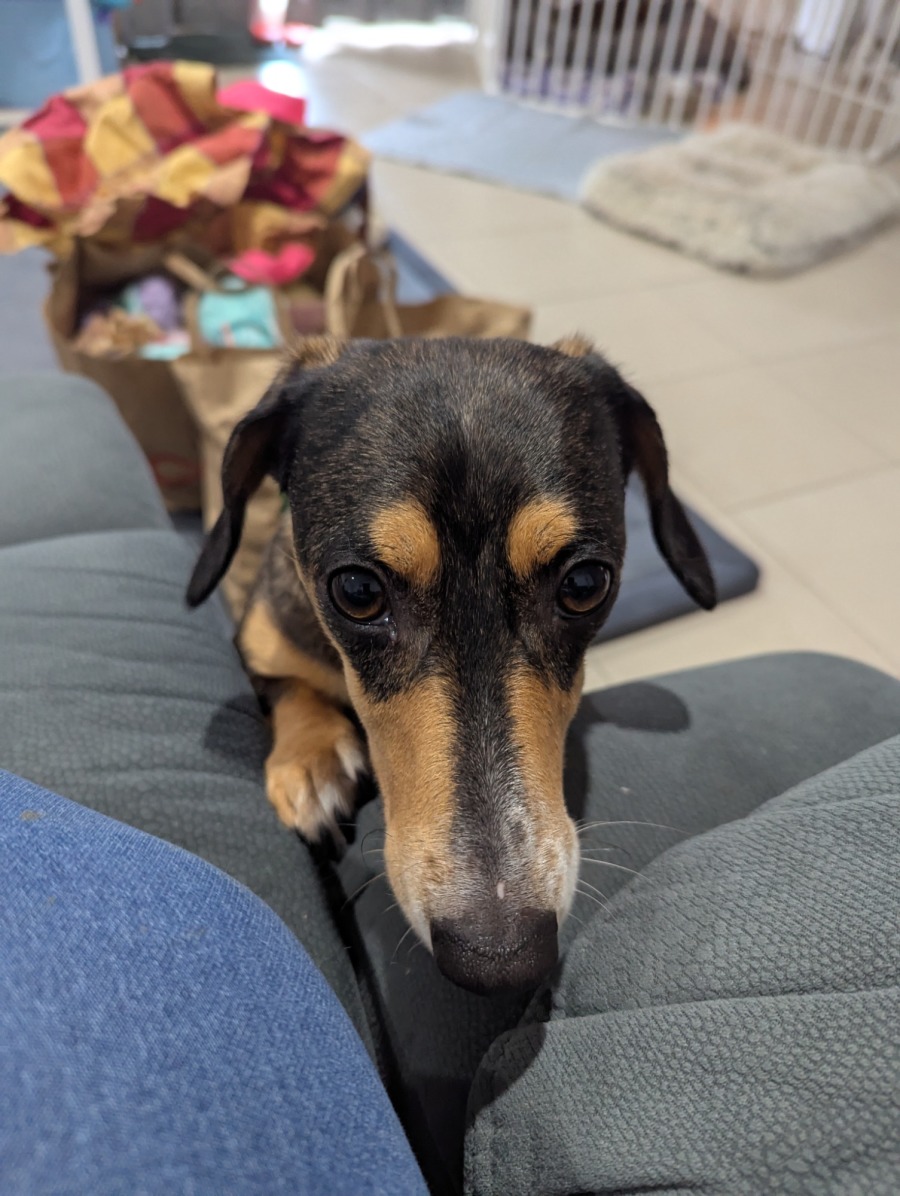 Suzie is a delicate and timid dapple dachshund with a heart full of love. She takes her time warming up to new people, often hiding behind familiar legs or curling up in her favorite cozy spot. Though shy at first, Suzie’s gentle nature shines through once she feels safe, rewarding those who earn her trust with sweet cuddles and soft, wagging tail wags. Her speckled coat and soulful eyes make her even more endearing, a little reminder that patience and kindness bring out the best in even the shyest of dogs. She needs 'her person' to get attached too. She thrives on love and will be loyal to her owner.