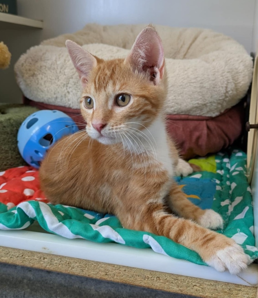 Milo loves to play and explore all things he can get his little paws on, toys are always fun and exciting to Milo. He also enjoys being the king of the castle on his cat tree on his free time!