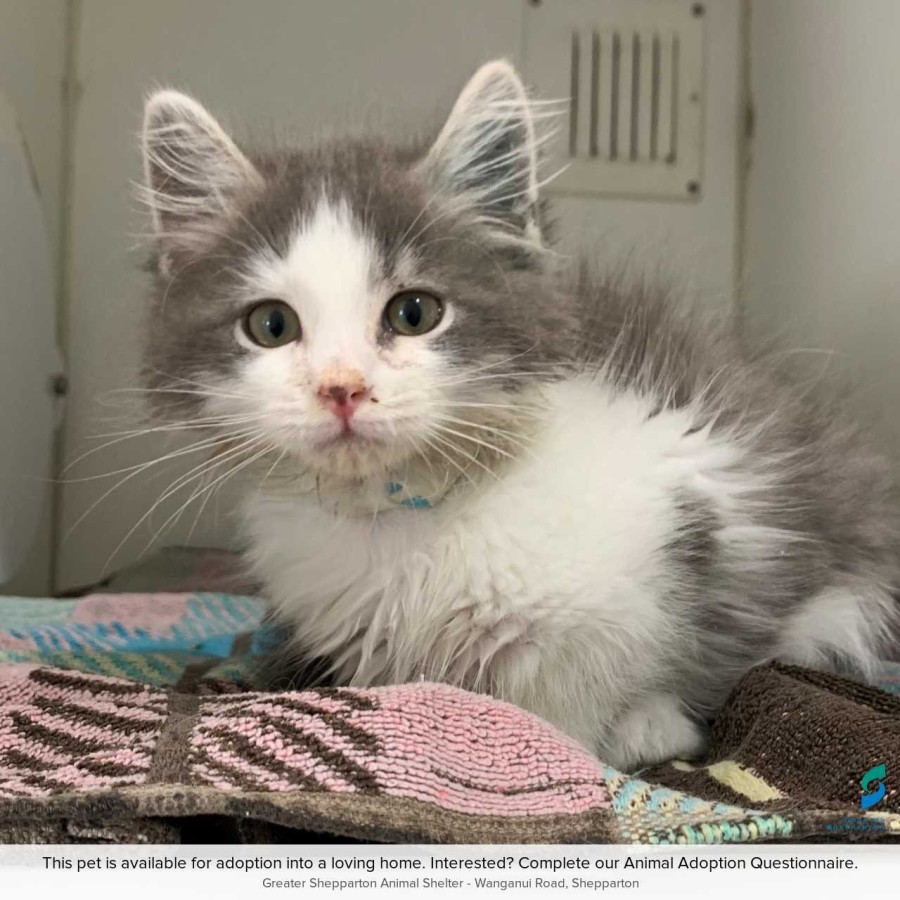Link is a sweet White and Grey Tabby, Domestic Medium Hair male kitten looking for his forever home! He is super sweet and friendly and has loads of love to give!