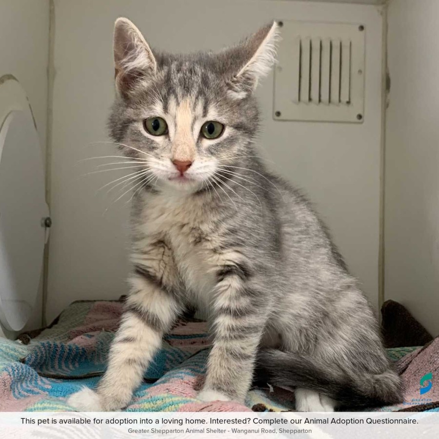Lola is a sweet Grey Tabby and White, Domestic Short Hair female kitten looking for his forever home! He is super sweet and friendly and has loads of love to give!