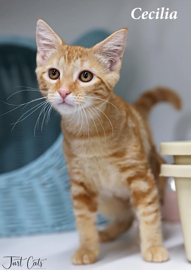 Cecilia is a gorgeous 14-week-old ginger kitten with a curious spirit and a playful heart. Found as a stray alongside her mother and sister, Florence, she has blossomed into a confident little adventurer who loves to explore, pounce, and chase after toys. She’s always up for a game but she also enjoys curling up for a cozy nap after a fun-filled day.