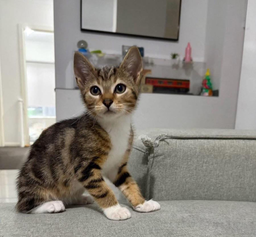 Socks is a big girl with a big personality. Socks loves playing with her siblings and any toys that are soft and cuddly. She especially loves her food.