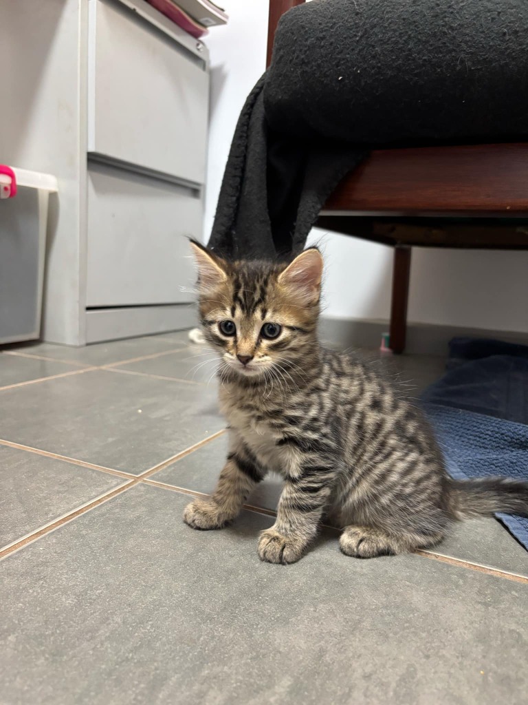 Nifty is a bundle of energy and joy, always on the move and ready for her next adventure! With her soft grey coat shimmering as she pounces, chases, and wrestles with her siblings, she brings endless fun and excitement wherever she goes. Fearless and full of curiosity, Nifty loves exploring new places and discovering new toys to conquer. 🐾✨