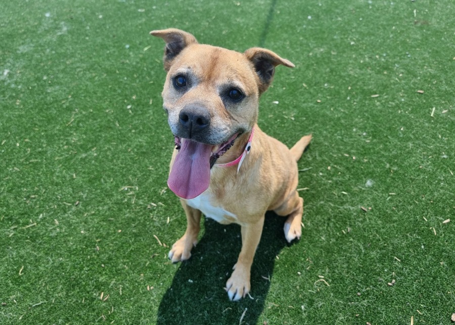 Sadie is affectionate and knows how to sit and shake. She’d thrive as the only dog in the home and with older kids as she can get carried away and jump when you take too long to throw the ball.