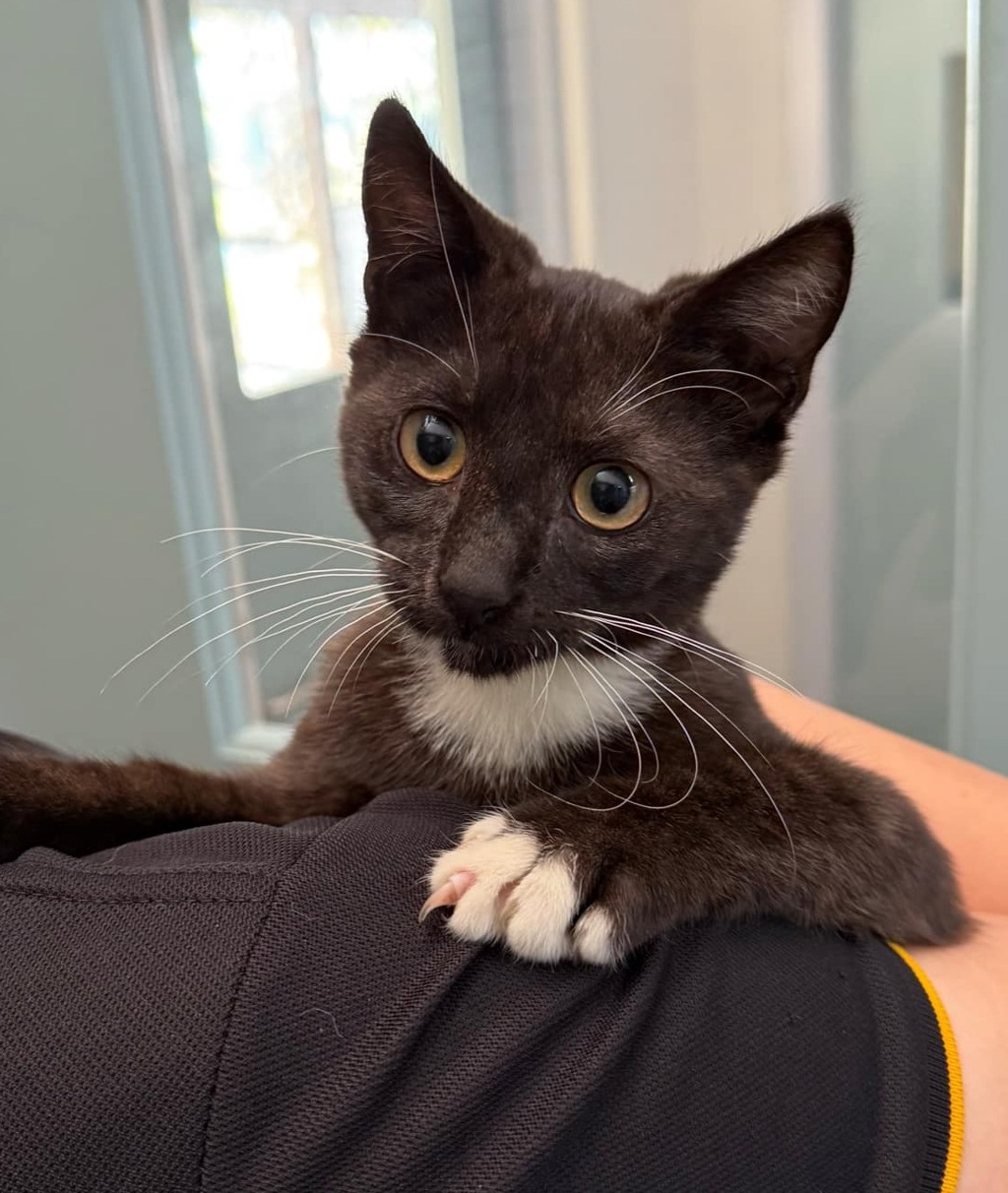 Hey there, I'm Ringers Western. I'm a friendly and affectionate kitten who would suit most homes! My playful paws are always ready to pounce on anything that moves. I love playing with wand toys and mysterious shadows on the wall! When I'm finished playing, I love nothing more than finding a warm lap to curl up in. I have perfected the art of the irresistible purr. It's like my secret weapon for getting all the cuddles and chin scratches I could ever want. Life's just one big, exciting string of moments, and I'm here to make every second count - whether I'm chasing my tail or sharing some purr-fectly quiet time with my favourite humans. So, if you're up for a bundle of furry fun and a lifetime of companionship, please consider adopting me!