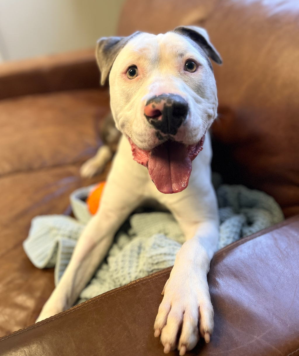 Meet Turtle, our adorable 1-year-old male American Staffordshire Bull Terrier, ready to find his forever home! This sweet boy is energetic, affectionate, and loves being around people. He's full of puppy-like enthusiasm and would thrive in an active household that can provide him with plenty of exercise and mental stimulation. His playful but calm nature makes him a perfect companion.