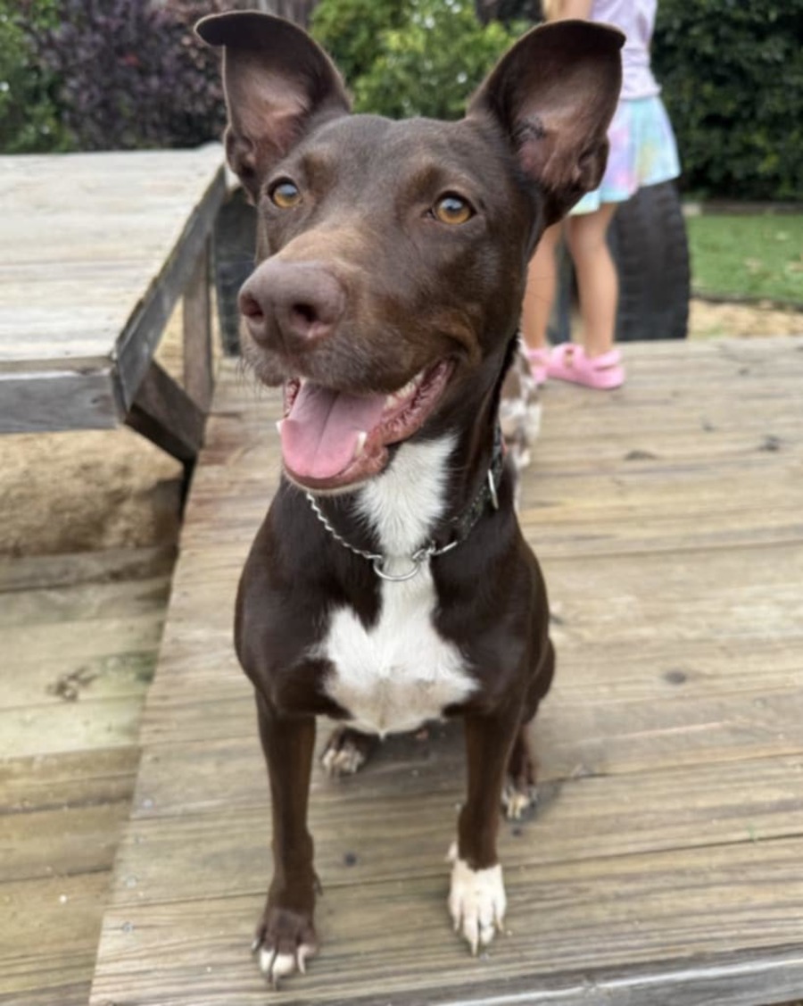 Hallie walks well on the lead. She is very food driven, sits for her food is crate and house trained has good recall and will thrive with some more gentle training, Hallie will be an amazing companion she is smart and funny and will make a wonderful companion to your family.