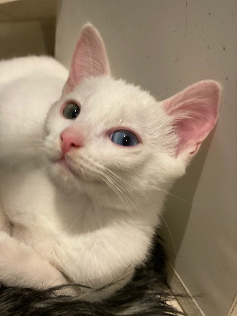 Peanut Butter is a bundle of joy wrapped in a soft, snowy-white coat! This confident and affectionate boy is always ready to brighten your day with his playful antics and loving nature. Whether he's zooming around the house, pouncing on toys, or showing off his hilarious kitten moves, he's guaranteed to make you smile.