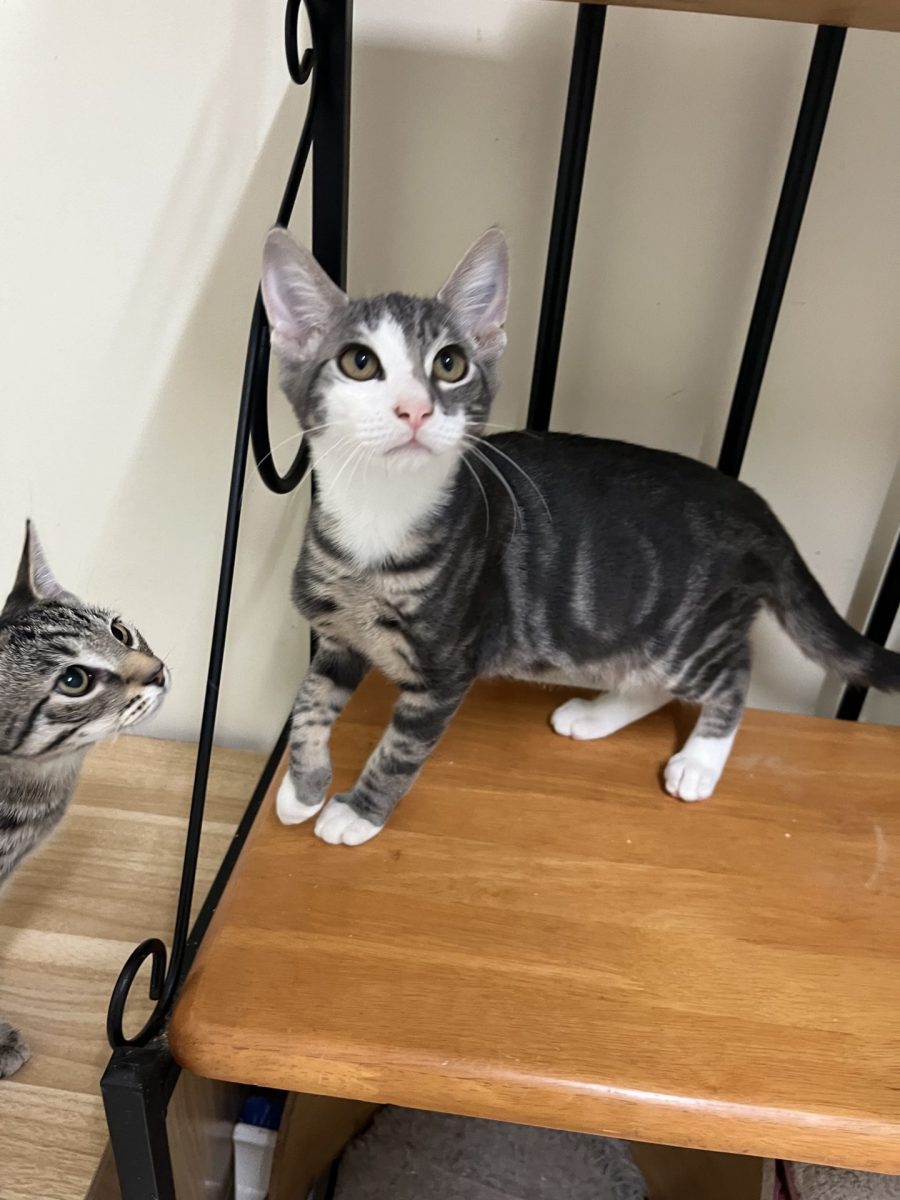 Cheeto is the typical playful kitten that spends his days playing eating and sleeping he loves attention and climbing the cat tree equally loves chasing balls with his siblings Cheeto has had his vet work done and is now on the search for his forever home he is reasonably confident and uses his litter tray well