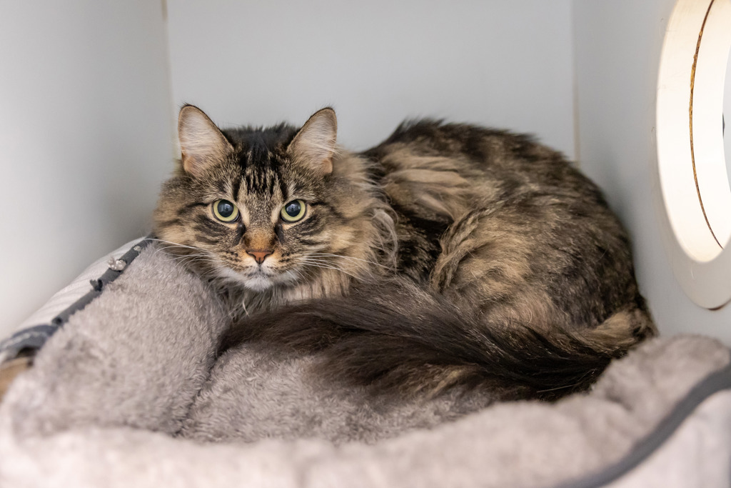 Gracie isn't just a cat-she's royalty, and she knows it! With her luscious, fluffy coat and regal presence, she'll bring an air of elegance to your home. Independent and poised, Gracie enjoys ruling her domain with quiet confidence. But don't be fooled-this queen has a smoochy side! Offer her some delicious treats, and she'll happily grant you an audience (and maybe even some cuddles).