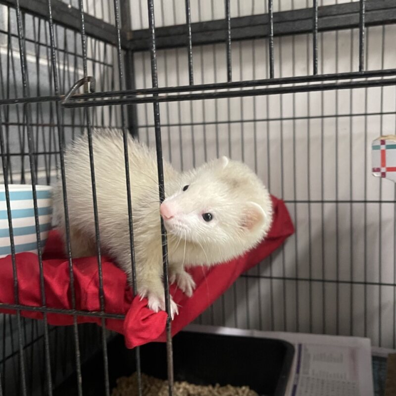 Hello, I'm Jada, a delightful 3-month-old female ferret! I'm looking for a home where I can explore, play, and snuggle. I'm a typical young ferret - full of energy and curiosity. I'm a bit of a social butterfly, and I love meeting new people, so I hope you're ready for lots of playful interaction. Though I'm young, I'm already showing signs of intelligence and playfulness. I love to engage in fun games and I'm more than willing to learn new tricks. I'm also a fan of cozy nap times, so I'd love a warm, comfy spot in your home to curl up in. I need an adopter who has knowledge or experience with my breed. We ferrets are unique and require specific care to stay healthy and happy. We're a long-term commitment as we can live up to 12 years or more, so I hope you're ready for many years of love, fun, and companionship. If you're experienced with ferrets and ready to add a bundle of joy to your life, I'm your girl. I can't wait to meet you and start our adventure together!
