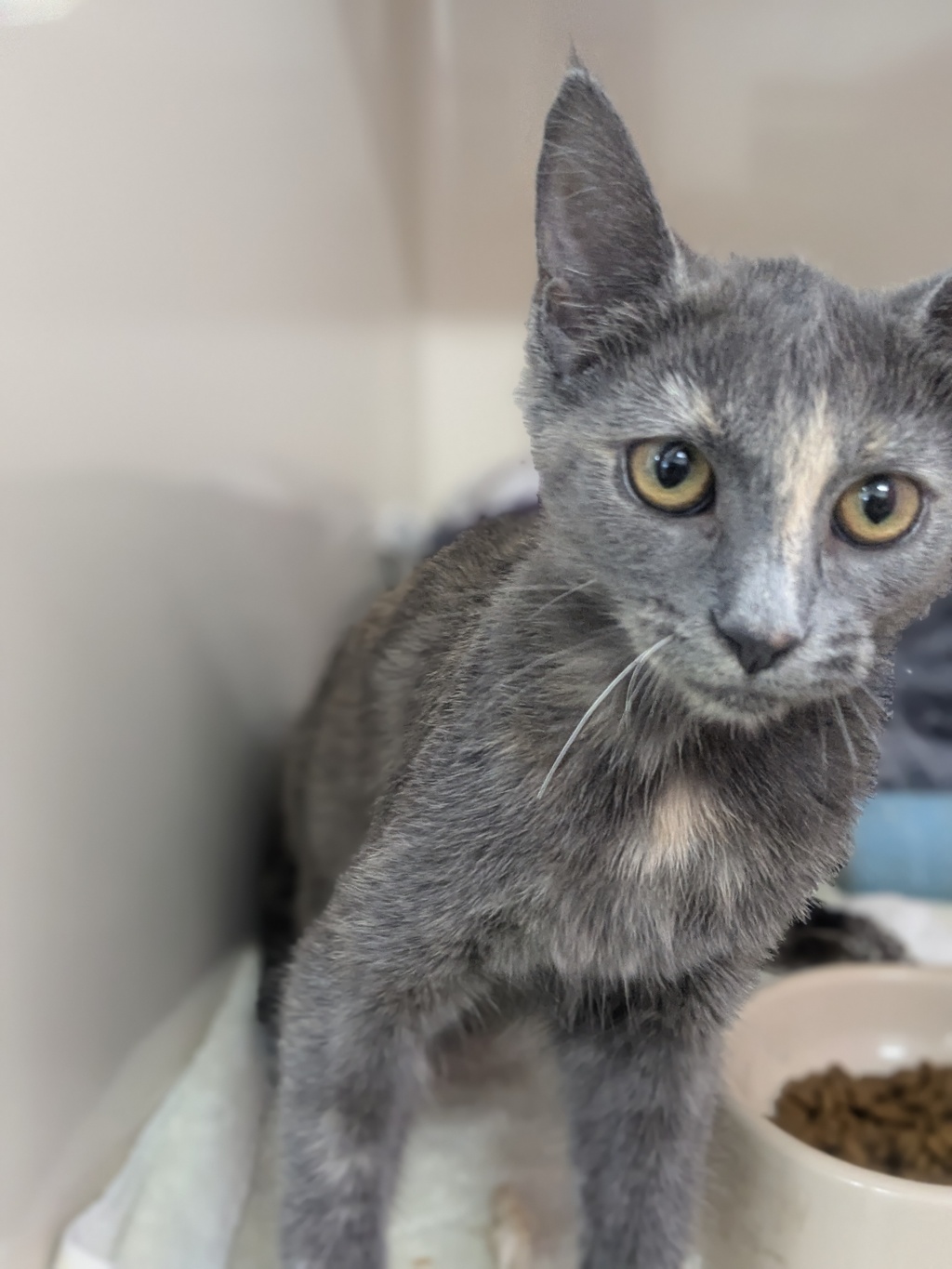 Persephone is a bit timid when entering a new environment and may take some time to fully settle in before showing her true self. She will thrive with a patient, understanding adopter who can provide the time and space she needs to adjust. Persephone would do well in a home with older children or teenagers who can read and understand basic cat body language and know when to give her space. She may also benefit from the company of a social, confident cat or kitten to help boost her confidence and encourage her to come out of her shell. With the right environment, Persephone will blossom into a loving and loyal companion.