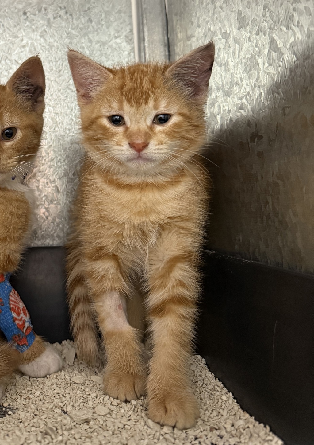 Petunia is a sweet, confident kitten who knows how to bring the fun! With her bold personality and love for adventure, she's always up for playtime, whether it's chasing after toys, exploring new spaces, or showing off her playful antics. Her confident nature shines through as she fearlessly takes on the world around her - this little one is a true superstar!