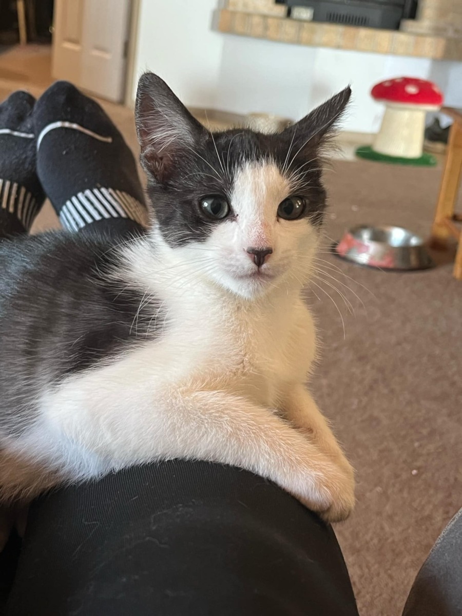 Like any playful kitten, she enjoys zooming around, chasing toys & exploring every nook and cranny. After all that fun, she’s happy to curl up for a cozy nap.