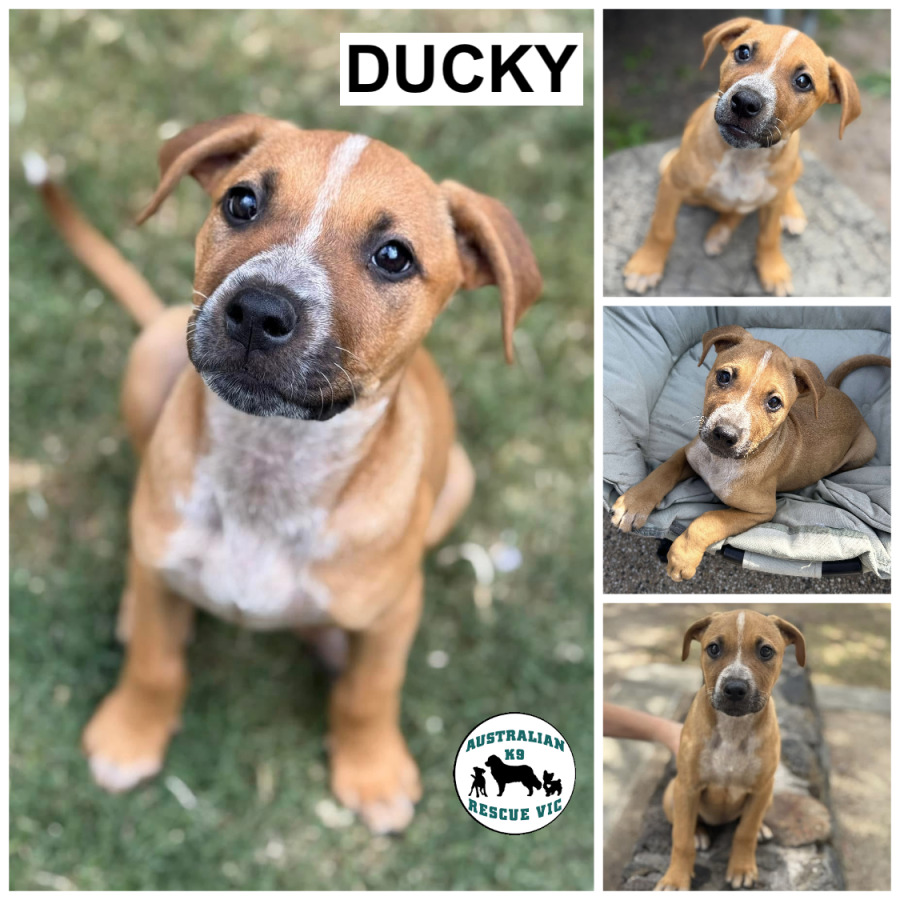 Ducky is a very well rounded pup having spent time on therescue base camp farm surrounded by numerous dogs of all sizes . chickens and sheep exposure and playing with her siblings in the paddocks before going into her foster home with a few siblings while we prepared her for adoption.