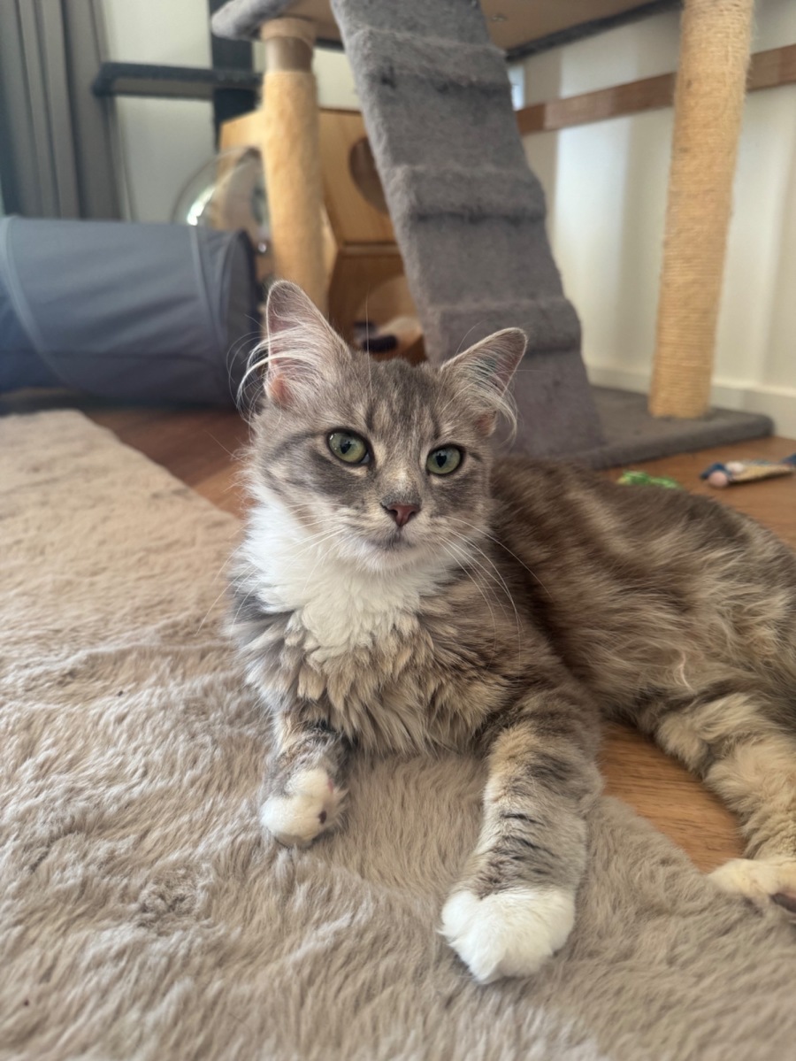 She’s happiest in a calm, quiet home where she can relax and show her affectionate side. Noodle is great with being picked up for cuddles and doesn’t mind a bit of smooching! 😽