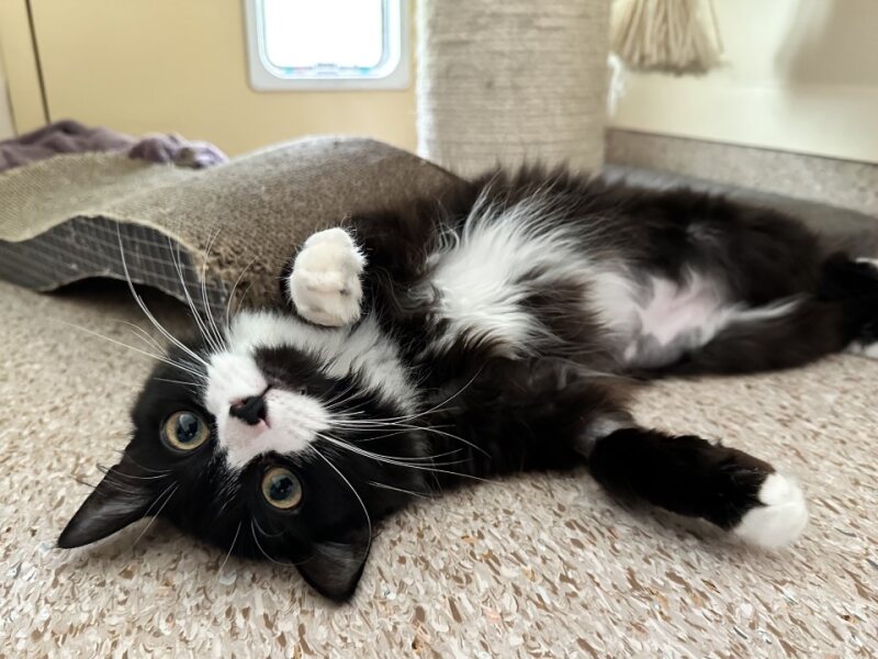 At first, I can be a bit nervous, and I might take a little while to come out of my shell, but when I do, I show my true colours – I'm sweet, gentle, and love a good playtime. I love to lay by your side and receive some good pats and secretly love to have zoomies at 6am (OOPs! Cats are crepuscular so this is normal!) Because I'm still figuring things out, I would do best in a calm and quiet household. No kids under 6, please – I prefer a peaceful environment where I can feel safe and secure.