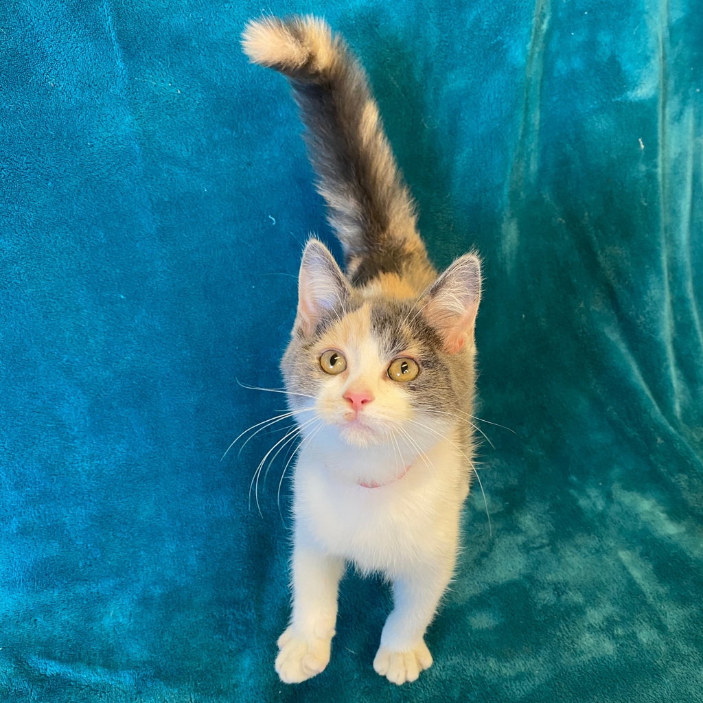 Super cute Callie is an adorable and lovable kitten looking for her new home! Callie is a super playful kitten who enjoys everything to do with toys, running around and other kittens! Shes often spending her time with her furry companions getting into plenty of mischief and causing some trouble! Don't be fooled by her playful and confident personality, she also has an affectionate and cuddly side too, she'll be more than happy to curl up in your lap and getting plenty of pats. If Callie sounds like the perfect kitty for you, give the shelter team a call today!