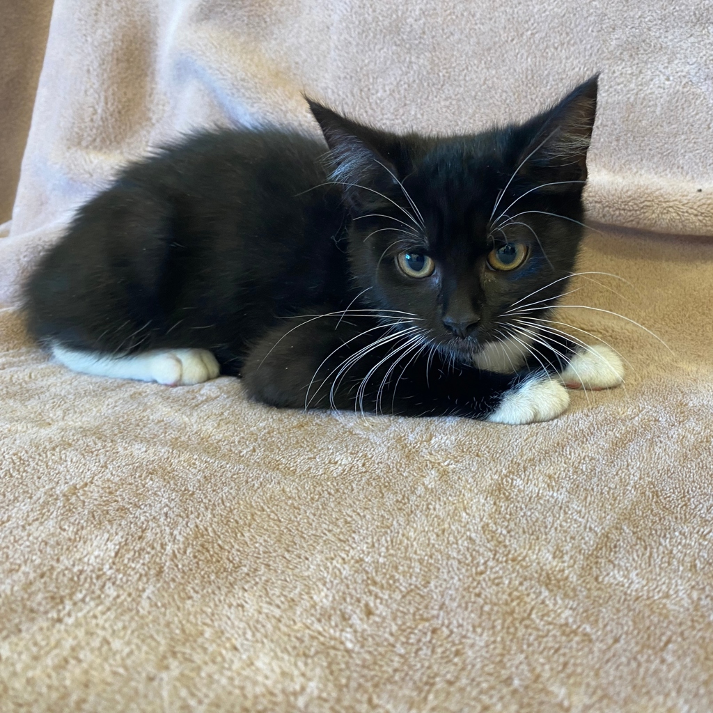 Magnificent and adorable little Mae, one of the sweetest kittens you'll ever meet! And she is on the lookout for her new home! Mae can be a little shy at first, but with a little encouragement, time and patience her amazing, playful and sweet nature comes bursting out! Mae can often be found running around after her toys, chasing her friends or curled up in someone arms getting plenty of pats!
