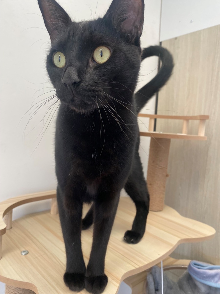 A stunning black male whose striking golden eyes are sure to captivate your heart. Mario glides through life with an elegant grace, embodying both beauty and confidence. More than just a pretty face, Mario is a charming companion, known for his friendly demeanor and adaptable nature, making him a remarkable addition to any household.