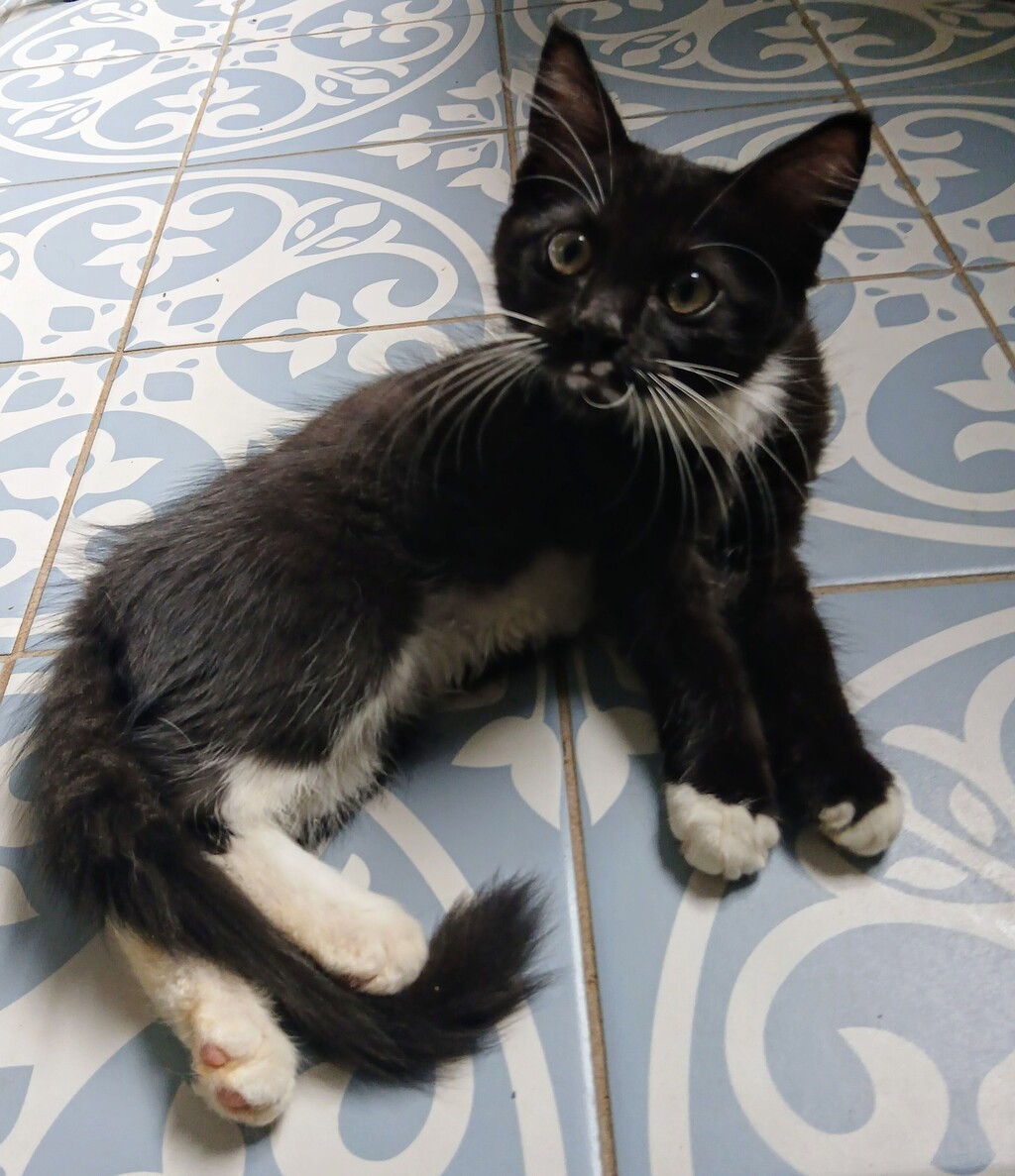 My soft long fur is great to stroke. I have beautiful tuxedo markings with two white dots on my lip.