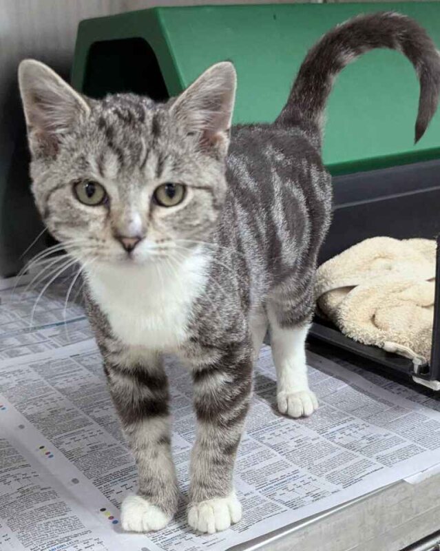 Hello there! My name is Viktor, and I am a two-month-old Domestic Short Hair kitten. I'm a little gentleman who's full of life and always ready to play. My activity level is high, which is quite normal for us kittens. I love to explore, chase balls of yarn, and am pretty good at hide and seek too! I'm a boy, but don't let that fool you. I'm as friendly as they come, and I promise to be a loyal companion. I have no known issues around children; in fact, I think I'll quite enjoy their company. They have the energy to match mine, after all! I have soft, short hair that's easy to groom. I’m always ready for a cuddle session after a good play, and I purr like an engine to show you how much I love being around you. Adopting me will bring a lot of fun and joy to your home. I can't wait to meet my forever family and start making beautiful memories together. Will you be the lucky one to take me home?