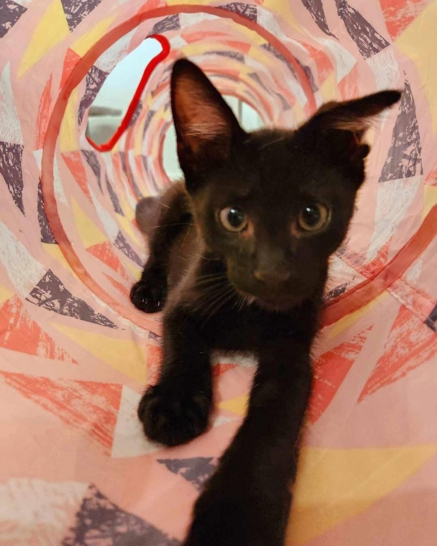 Hey there, Iām Onyx, a bold and adventurous little panther with a heart full of mischief! Iām always ready for actionāwhether itās a playful wrestling match with my sisters or taking on my much bigger foster sibling. My ideal home would have other feline friends to keep me company, and I might even get along with a dog (though I havenāt met one yet!).