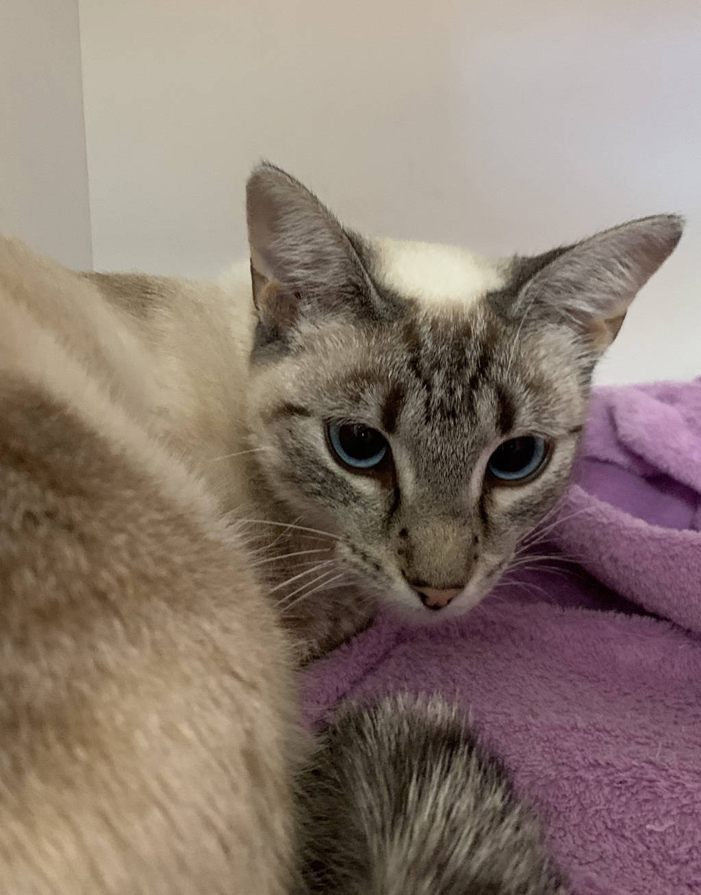She would thrive in a quiet, multi-cat home where she can continue to build her confidence. A household without young children would be best for her sensitive nature.