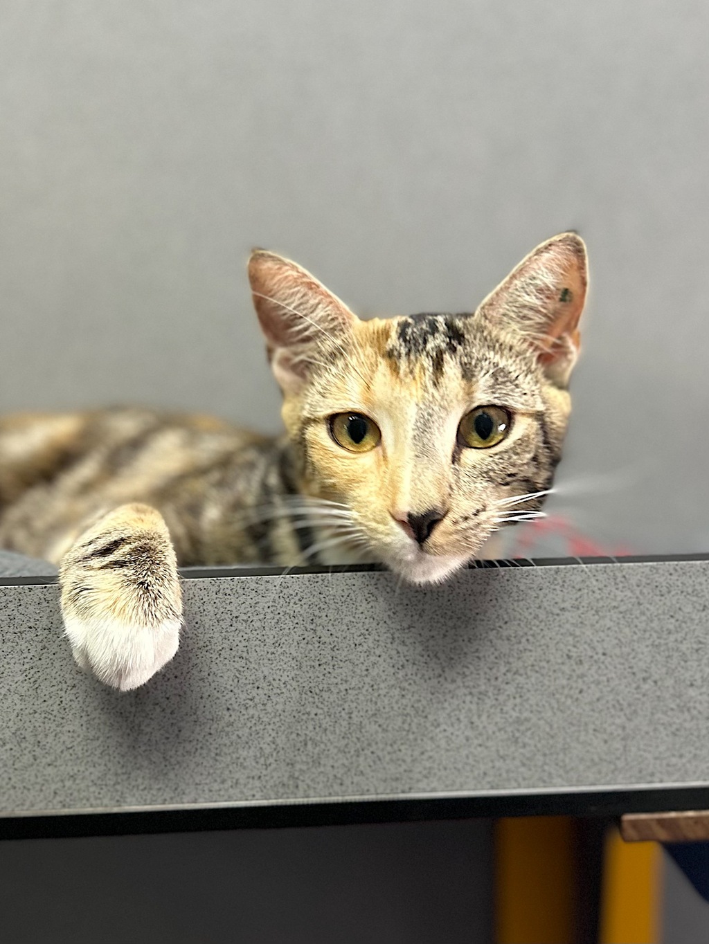 I'm still learning about the world, but I've already discovered that I love gentle pats and quiet moments. I have a soft purr that seems to soothe those around me. My days are filled with simple pleasures like chasing after toy mice and curling up in cozy corners. I'm not one for loud noises or sudden movements; I much prefer a calm, tranquil environment. I'm a sweetheart, really, my markings make me very unique and I believe I would make a wonderful companion for someone who appreciates the quiet moments as much as I do. Adopting me means gaining a loyal friend who will cherish every moment spent with you.