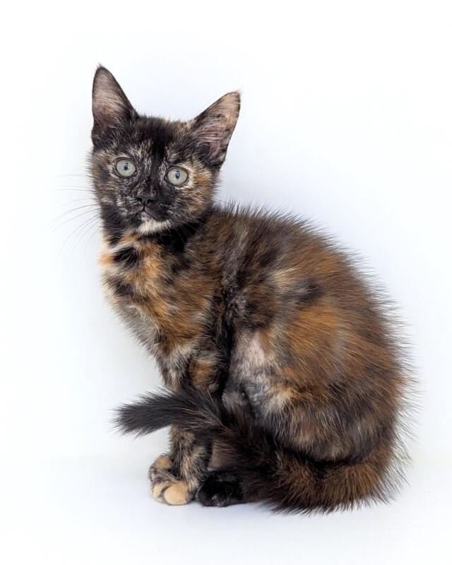 Hello there! My name is Lilo, and I'm a 2-month-old female Domestic Short Hair kitten. I'm a bundle of joy who loves to play and explore. My activity level is high and I'm always up for some fun! I'm a curious little adventurer who loves to discover new things. No worries on the child front, I have no known child-related issues. I'm a friendly and social kitten who loves to be around people. I think we could be the best of friends! I'm still a baby, learning about the world, so I'll need a family that can teach me and help me grow. I'm excited to meet you and start our forever adventures together! Are you ready to add a little extra love and happiness to your life? If so, I'm your girl!