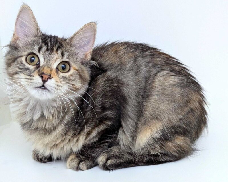 Hello there! My name is Donatello, and I'm a 3-month-old female Domestic Short Hair kitten. I'm as playful and active as they come. I love darting around, exploring my surroundings, and engaging in playful antics that are sure to keep you entertained. But it's not all about playtime; I'm also a big softie who loves to snuggle and shower you with purrs and affection. I have no known issues with children, so I should fit right into any loving family. If you're looking for a fun, lovable little kitty to add to your home, then I'm your girl. Let's meet and see if we're a purr-fect match!