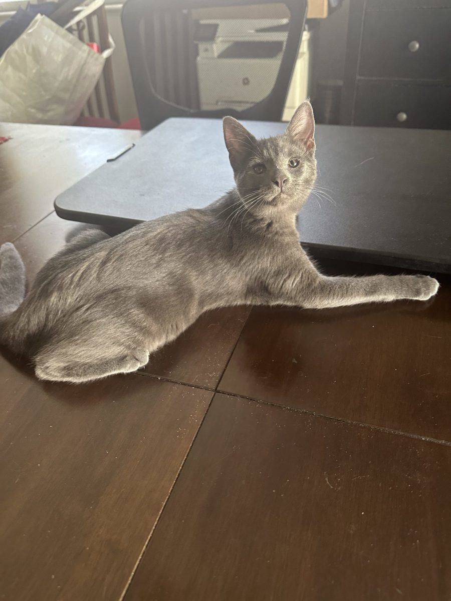 Beryl is an affectionate kitten and likes to follow us around but can be skittish at times.