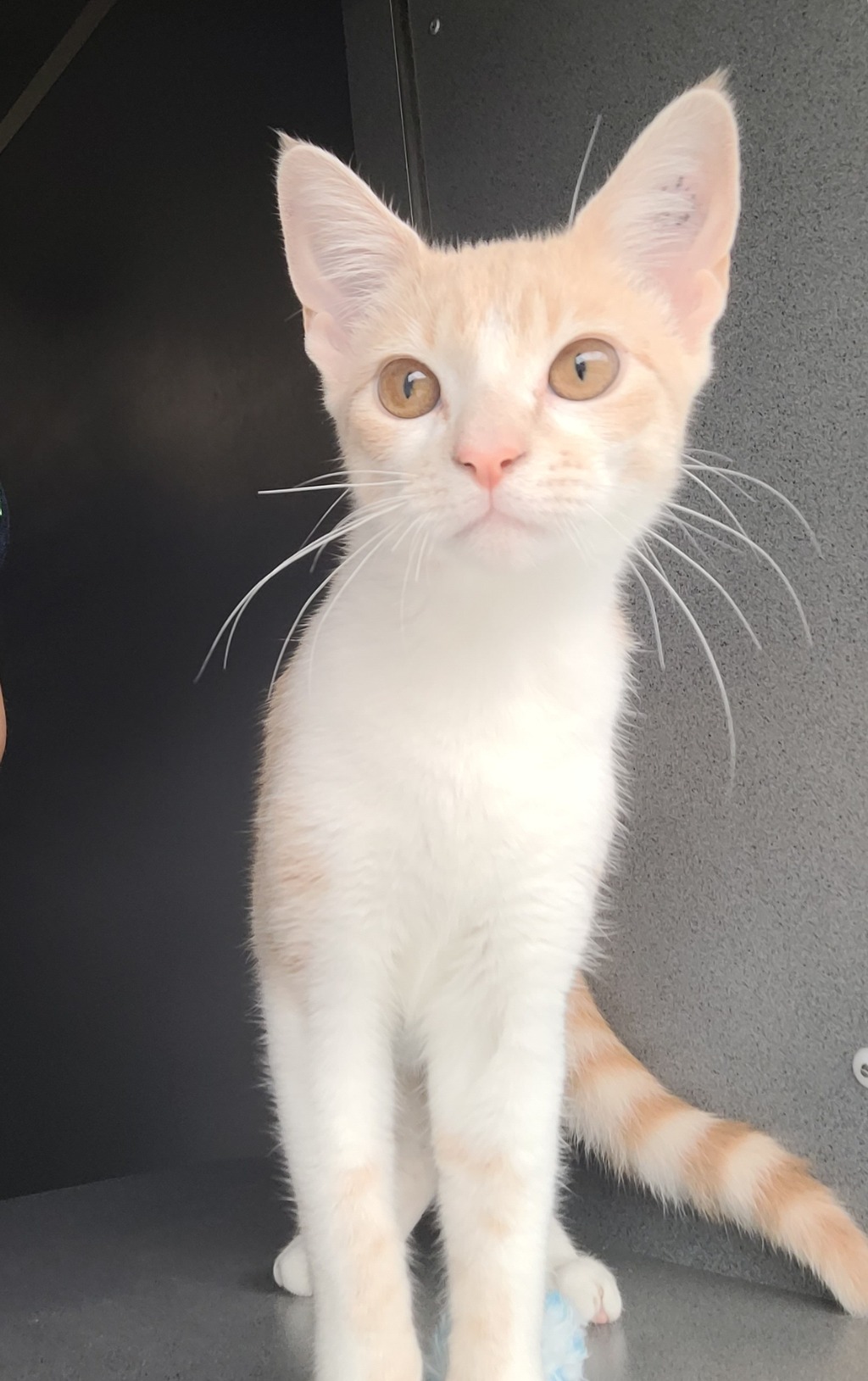 Hello there, I'm Fergus. I'm young, full of life and have a knack for making humans smile. I'm quite the social butterfly, always ready to greet you with a soft purr and a playful pounce. I love a good game of chase the string, but I'm equally content curling up in a cozy lap. I'm a pretty good listener too, always there to lend a comforting purr when you need it. Adopting me means gaining a loyal friend, a playmate, and a cuddle buddy all rolled into one furry package.