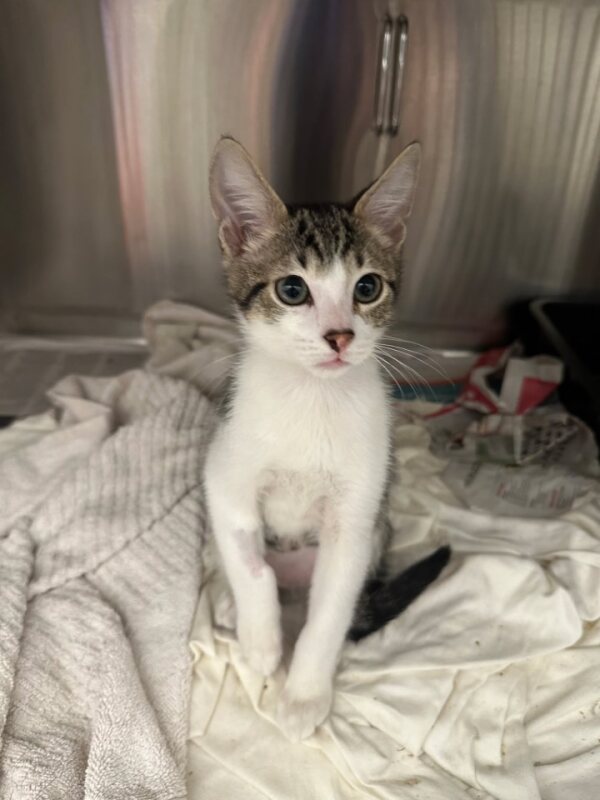 Hello there! My name is Frankie, and I'm a 3-month-old male Domestic Short Hair kitten.