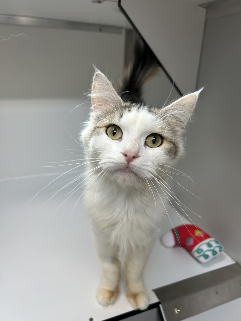 Meet Jackie, a sweet and affectionate kitty with a heart full of love and a dash of shyness! This adorable little one can be a bit nervous at first, but once she warms up to you, she'll be your best friend, curling up in your lap and showering you with gentle head boops. Jackie may take a little time to get comfortable in new surroundings, but with patience and kindness, her playful side shines through. Whether it's chasing a toy or rolling around, she's sure to bring joy to your home. If you're looking for a loving, cuddly companion who will bloom with your care, Jackie is the perfect match!