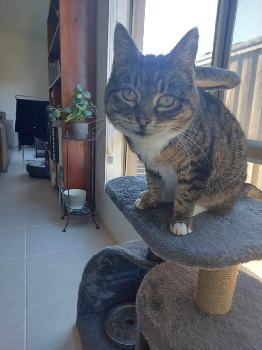 From living in the caravan park and not being vaccinated Kit suffered quite alot of cat flu. Because of this she is more prone to getting a sniffle, runny eyes or sneezes when she is stressed.