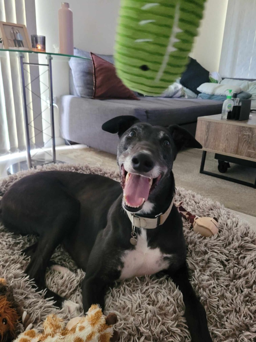Meet Flash, the greyhound with a heart as endearing as his name! Whether you're an experienced dog owner or new to the world of canine companionship, Flash is sure to steal your heart with his perfect blend of affection, playfulness, and independence.