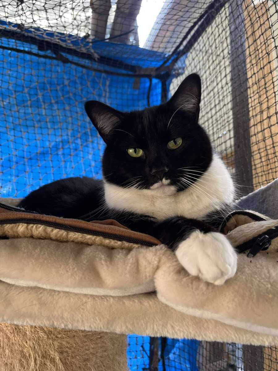 Willow adores settling onto a warm lap for some quality snuggle time, exuding contentment while being the center of your attention. One of her favorite pastimes includes playing with wand toys, showcasing her impressive agility and alertness as she pounces and twirls with delight. When she's not busy engaging in play, Willow can be found perched at the top of her cat tree, watching the world go by with an air of regal serenity.