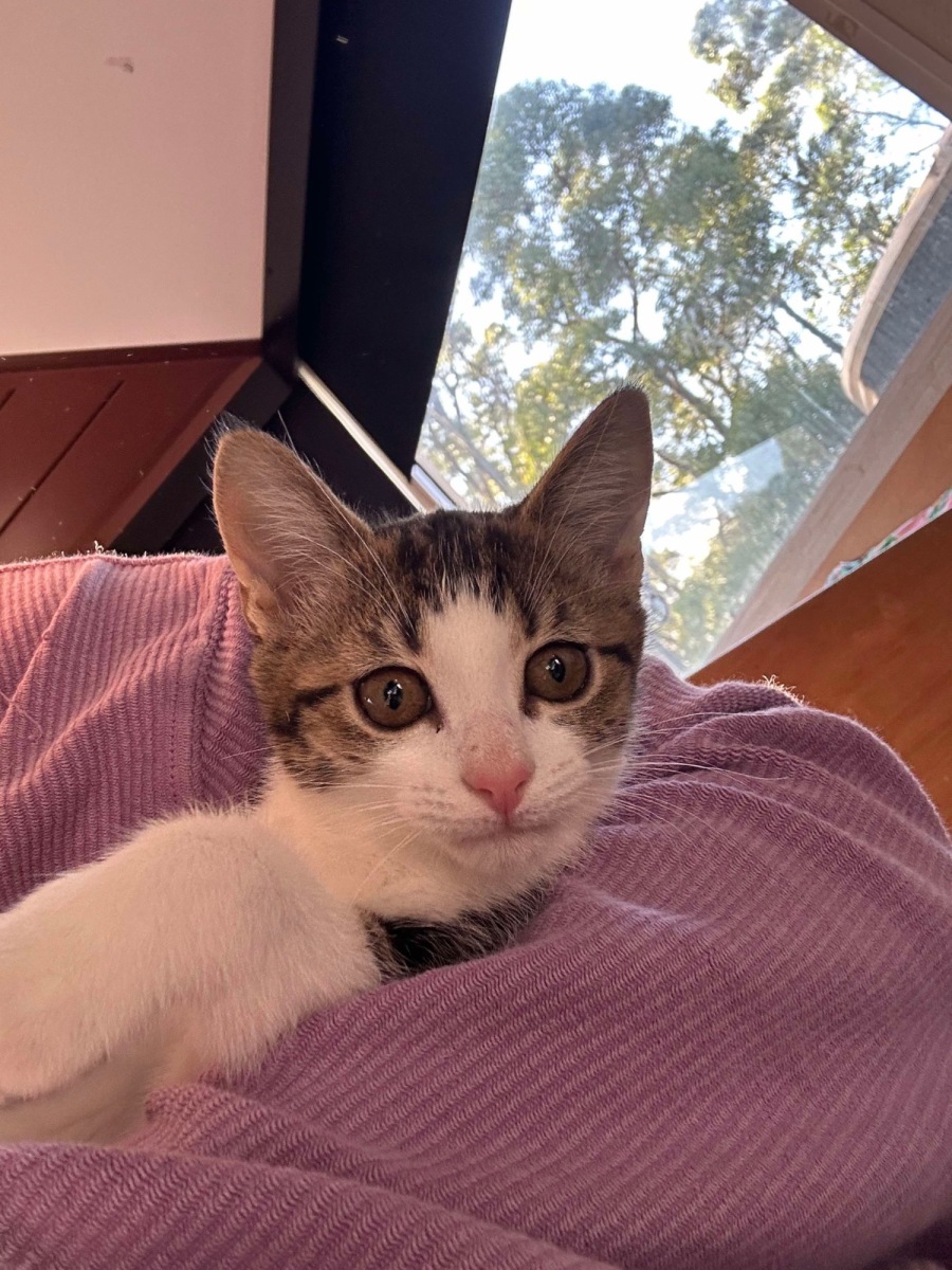 Meet Bacon, the delightfully sassy and chatty cat who is ready to bring a spark of joy into your home. With her expressive personality and lively antics, Bacon is the kind of cat who will keep you entertained for hours on end. Her playful side shines through as she enthusiastically carries toys around in her mouth, creating a vibrant atmosphere wherever she roams.